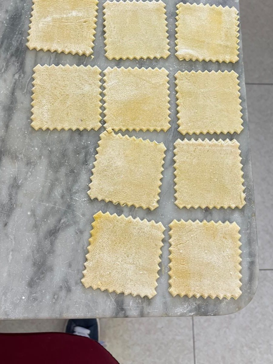 Home » Rome » Activiteiten Rome » Workshop pasta maken in Rome + dessert en limoncelloWorkshop pasta maken in Rome + dessert en limoncello Door Margreth Een stedentrip Rome is natuurlijk niet compleet zonder pasta. 🍝 En wat is er leuker dan die zélf maken, met je handen in het deeg? Wij deden mee aan een pasta workshop in Rome en leerden hoe je fettuccine en ravioli maakt zoals ze dat hier al generaties lang doen. Aan een grote tafel lagen de deegrollers al klaar, de ricotta stond op kamertemperatuur, en de tomatensaus pruttelde zachtjes op het fornuis. In dit artikel delen we onze ervaring, praktische tips én waarom deze workshop een aanrader is, ook als je met kinderen reist. Nog meer leuke activiteiten in Rome!– Fietstour met een Nederlandse gids– Bezoek het Vaticaan– Neem een kijkje in het Colosseum– Rome bezienswaardigheden Zelf pasta maken in Rome Zo ziet de workshop pasta maken in Rome eruit 3 verschillende soorten pasta maken in Rome Veelgestelde vragen Zo ziet de workshop pasta maken in Rome eruit De workshop vindt plaats in een kookschool in hartje Rome. Bij binnenkomst stond alles al klaar: houten deegrollers, kommetjes met bloem, eieren en raviolisnijders. De ruimte ademt de sfeer van een ambachtelijke Italiaanse keuken: warme bakstenen muren, robuuste tafels en een open kookgedeelte waar de pannen al zachtjes stonden te pruttelen. 🤩 Iedereen kreeg een eigen plekje om aan de slag te gaan, compleet met schort en eigen werkmateriaal. De chefkoks zijn Giuseppe en Martina, allebei echte pro’s als het gaat om het maken van pasta. 🤩 We begonnen de workshop met een korte introductie en een uitleg over hoe de workshop in zijn werk zou gaan. Meteen was te merken dat Giuseppe en Martina super enthousiast vertelden en ze maakten de uitleg ook echt leuk door op een grappige manier alles te vertellen. Ze reageerden ook heel leuk op kinderen. Stap voor stap werd het proces van het maken van pasta aan ons uitgelegd. 🎟️ Wil je dezelfde workshop doen als wij? Hier kun je de workshop pasta maken boeken Alle materialen voor de pasta workshop staan al klaar Alle materialen voor de pasta workshop staan al klaar Deeg maken Vervolgens begonnen we met het maken van het deeg. Het maken van het deeg is eigenlijk super eenvoudig, je hebt namelijk alleen bloem, eieren en een beetje zout nodig. Maar het vereist wel wat techniek om het goed te maken. We mixten de ingrediënten namelijk niet zomaar in een kom door elkaar, maar we maakten een ‘kuiltje’ van bloem op het werkblad. In het midden van het kuiltje werden de eieren toegevoegd. Van deze ingrediënten maakten we een grote bal deeg. Deze bal van deeg gingen we vervolgens ‘uitrollen’. Het uitrollen deden we in verschillende stappen. Eerst maakten we het deeg met de hand plat, daarna gebruikten we een deegroller om het nog platter te maken en uiteindelijk ging het deeg in de pastamachine om het echt súper plat te maken. Hierna was het deeg klaar om de pasta te gaan maken! 🍝 Tip: Schrijf alles op, stap voor stap. Zo kan je thuis ook zelf pasta maken! 😋 Powered by GetYourGuide Verschillende soorten pasta maken in Rome Tijdens de workshop mochten we verschillende soorten pasta maken. Dat is erg leuk, omdat elke pastasoort weer z’n eigen techniek heeft. Het maken van het deeg is relatief simpel, maar het vouwen en het bewerken van het deeg vereist echt wel even wat oefening. 😜 Tortellini is een van de pasta soorten die je gaat maken. Het zijn kleine ‘buideltjes’ van pastadeeg, met een vulling erin. Voorbeelden van vullingen zijn vlees of kaas. Deze pasta wordt gemaakt door de vulling op een vierkantje deeg te leggen en dit vierkantje daarna diagonaal ‘dicht te vouwen’. Hierna is het belangrijk om de randjes goed aan te drukken, zodat de vulling in het buideltje blijft zitten tijdens het koken. De workshop is ook erg leuk om te doen met kinderen. De chefs gaan namelijk heel geduldig en speels met kinderen om. Een jongen uit de groep van een jaar of twaalf had moeite om zijn cappelletti mooi dicht te vouwen. Hij keek even op naar de chef, die direct naast hem kwam staan en met een brede glimlach zei: “No worries, pasta doesn’t need to be perfect, it just needs to be made with love.” 😜 Daarna liet de chef het langzaam nog eens zien, met een grapje tussendoor. De jongen was achteraf heel trots toen het gelukt was. Ook maak je ravioli tijdens de pasta workshop. Ravioli lijkt eigenlijk best wel op tortellini. Dit zijn ook buideltjes van pastadeeg met een vulling, alleen zijn ze iets groter. Het verschil is dat ravioli vierkant van vorm is, terwijl tortellini meer rond van vorm is (als een soort kroontjes). Ook zijn er bij ravioli vaak meer gevarieerde vullingen, zoals spinazie/ricotta en mozzarella/tomaat. Meestal wordt ravioli geserveerd met een eenvoudige saus zoals boter en salie. Ook maakten wij fettuccine. Fettuccine is een pastasoort die erg populair is in de Romeinse keuken. Het komt ook uit de regio Lazio, waar Rome ligt. De naam komt van het Italiaanse woord “fettucce”, wat linten betekent. Dit is eigenlijk een ‘dikkere’ variant van de bekende pastasoort tagliatelle. Voor het maken van fettuccine wordt het pastadeeg dus in repen gesneden. Bij zelf pasta maken in Rome hoort natuurlijk ook pastasaus, maar deze maakten we niet zelf. Dit komt omdat voor veel sauzen een lange bereidingstijd nodig is. Sommige sauzen waren dus al eerder gemaakt door de chefs, ook mochten we kijken hoe een andere saus ter plekke werd bereid door de chef. Toen iedereen klaar was met het maken van zijn/haar pasta, werd de pasta door de chefs zelf bereid. 🇮🇹 Terwijl wij na het rollen en vouwen even konden pauzeren, nam chef Giuseppe het over om onze pasta te bereiden. “Dit is het moment waarop je doet alsof je alles zelf hebt gemaakt,” grapte hij terwijl hij een nestje fettuccine voorzichtig in het kokende water liet zakken. “Als het lukt, is het mijn werk. Als het mislukt, is het jullie schuld.